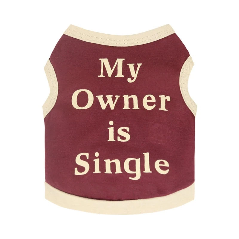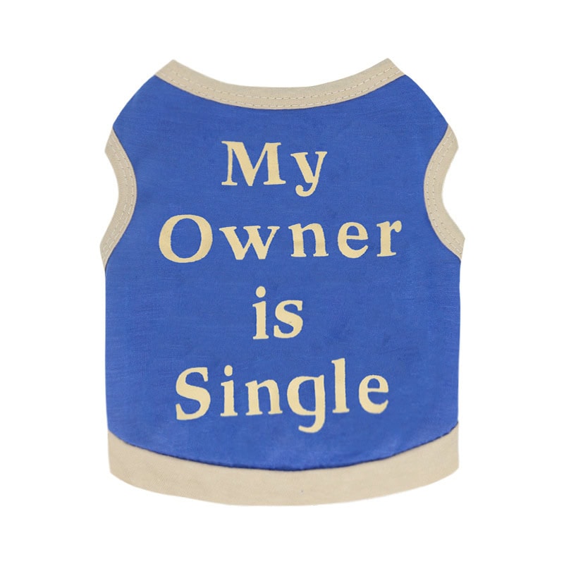 Design: Printed dog vest with humorous slogan “My Owner Is Single”