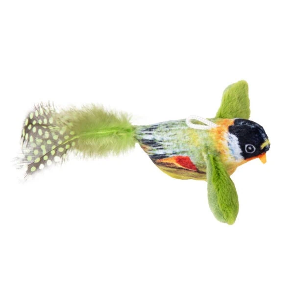 The CET002 realistic chirping bird cat toy is developed to trigger cats’ instinctive hunting and chasing behaviors through sound, texture, and movement. Designed with a bird-inspired appearance, this toy combines a soft polyester fiber body with natural feathers, creating a multi-sensory play experience that keeps cats actively engaged.