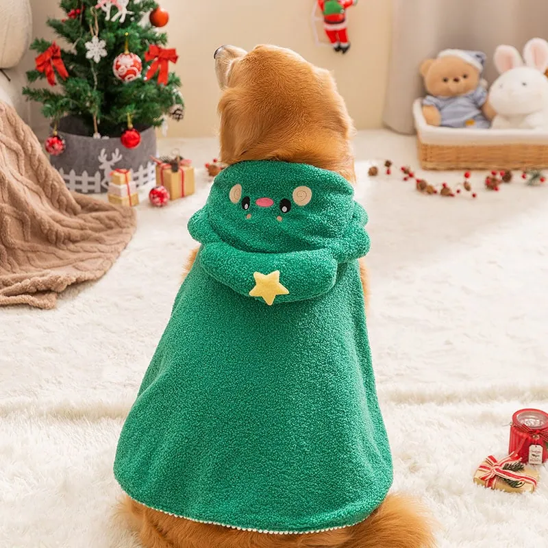 Warm fleece dog hoodie costume available in Christmas tree and reindeer styles.