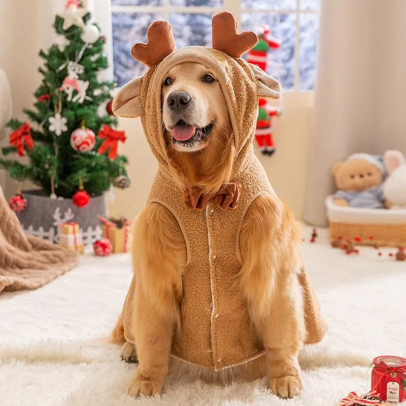Each costume includes cute details like plush antlers or a gold star hat, perfect for Christmas photos or pet parties.