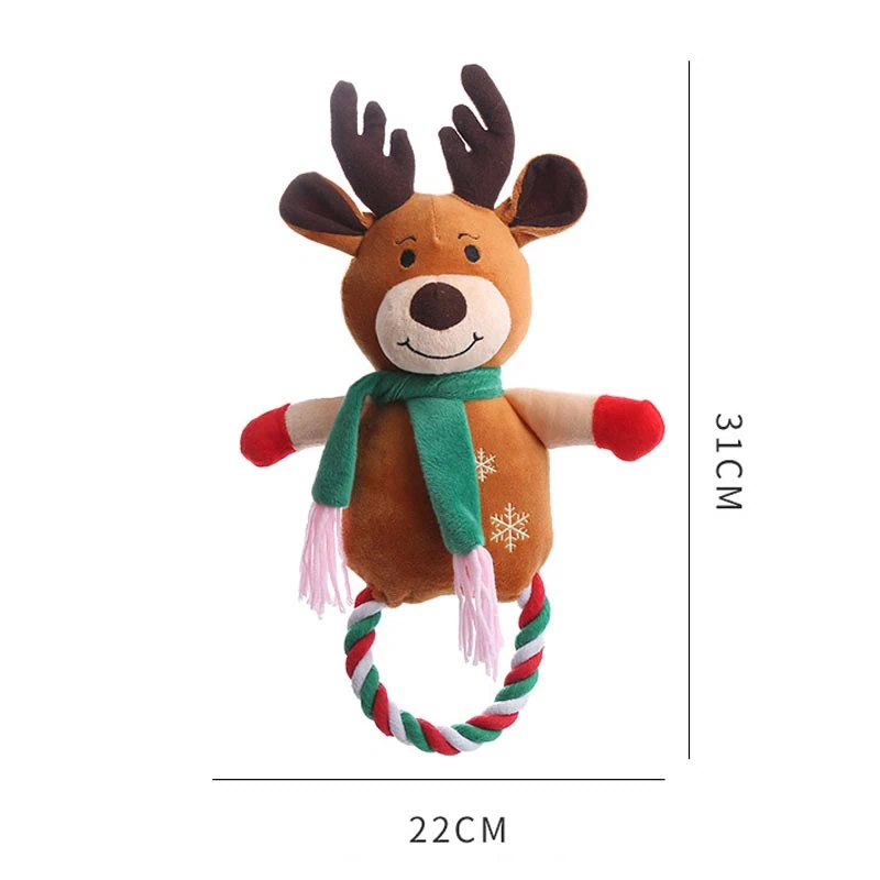 Professional OEM pet toy factory supplying Christmas plush dog toys with rope and squeaker for wholesale orders.