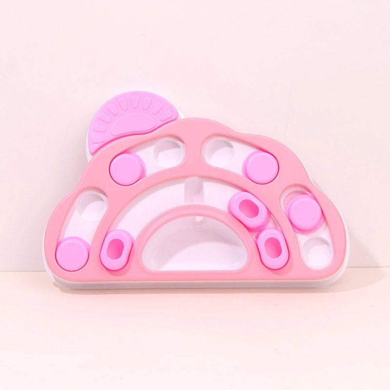 This cloud-shaped puzzle toy offers a fun and engaging way to feed your pet. Featuring several sliding discs and compartments, it encourages your dog to explore, sniff, and slide to find hidden treats.