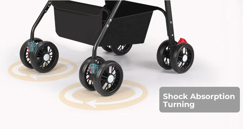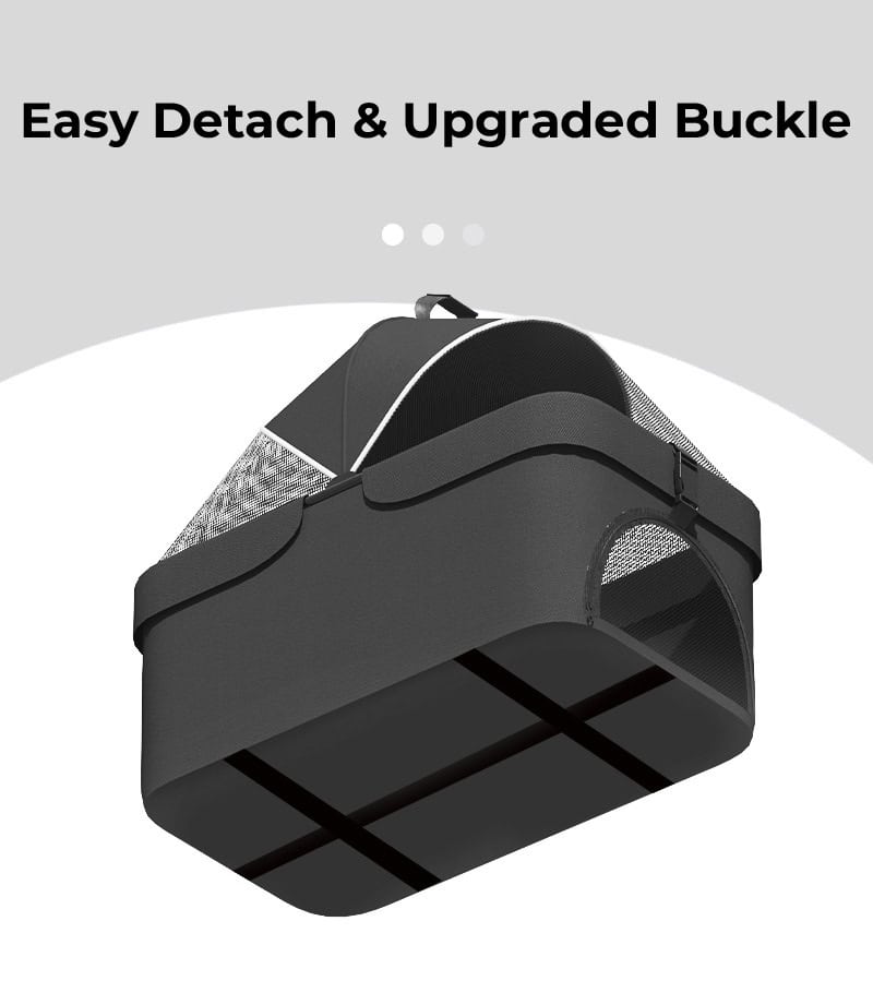 Integrated mesh ventilation panels improve airflow and provide pets with visual comfort while reducing stress during movement. The four-wheel stroller system ensures stable handling on common walking surfaces, while the ergonomic push handle supports smooth and controlled operation. Its foldable frame enhances storage efficiency and simplifies transportation and logistics.