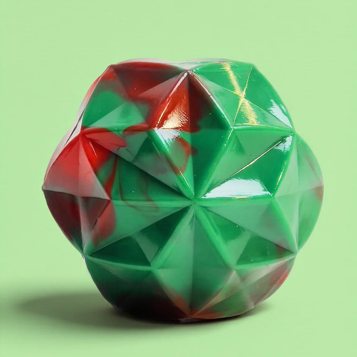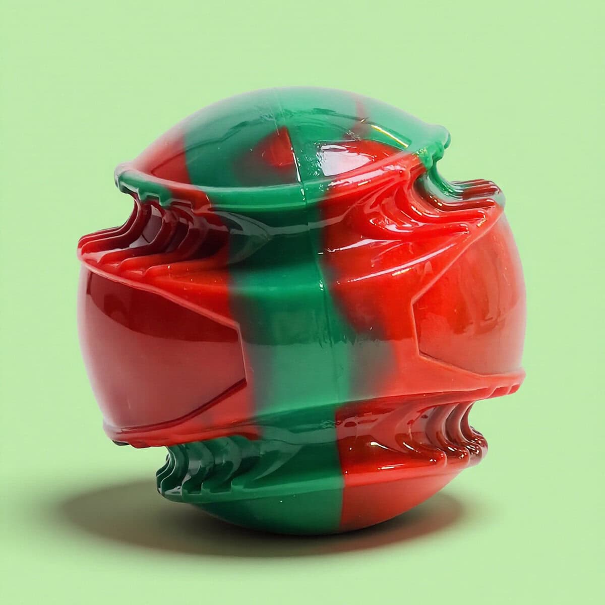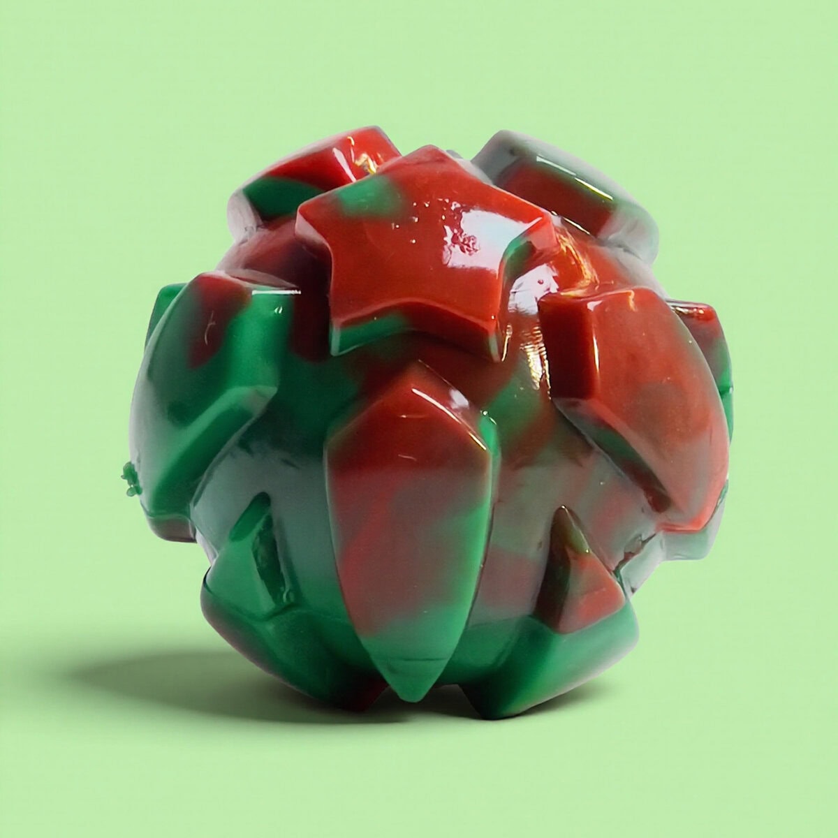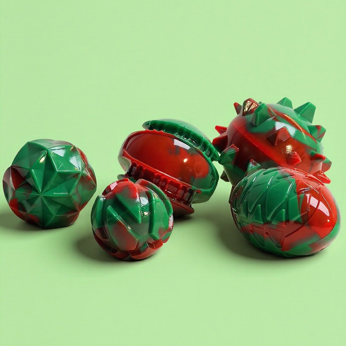 Set of 5 Christmas-themed TPR dog toy balls in red-green mix colors.