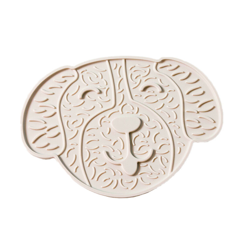 Stylized dog-face shaped mat with elegant internal relief patterns offering slow-lick stimulation with premium look.