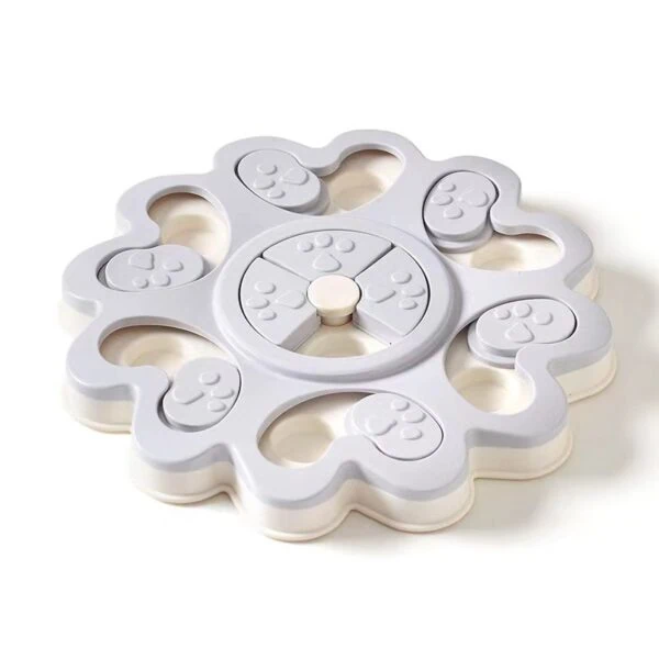 This flower-shaped puzzle toy keeps your pet mentally engaged with multiple treat-hiding sections. Dogs can push, slide, and rotate the center plate to uncover hidden snacks, turning mealtime into a fun challenge.