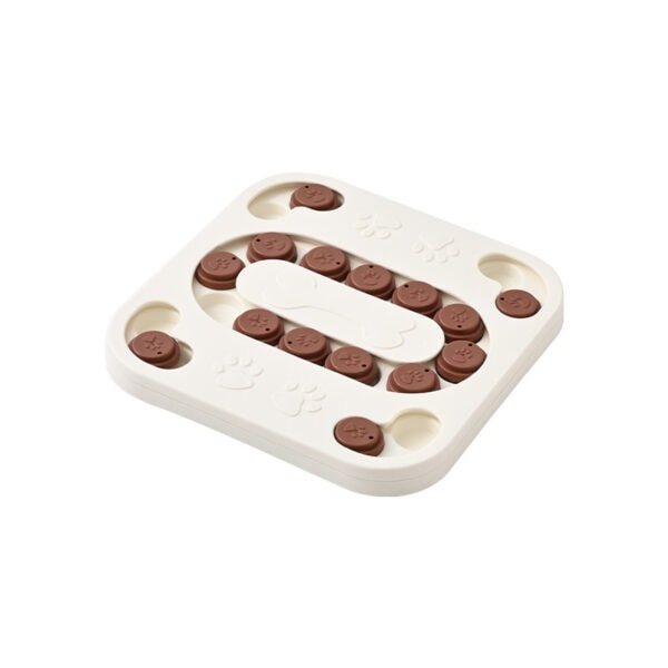 Compact square design with sliding bones and rotating discs. Encourages dogs to use their nose and paws to uncover treats, enhancing mental focus and slowing eating speed.