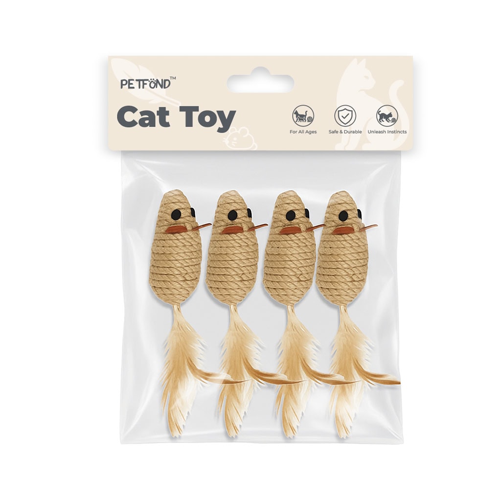 Product Name:Natural Jute Mouse Cat Toys with Feathers – 4 Pack