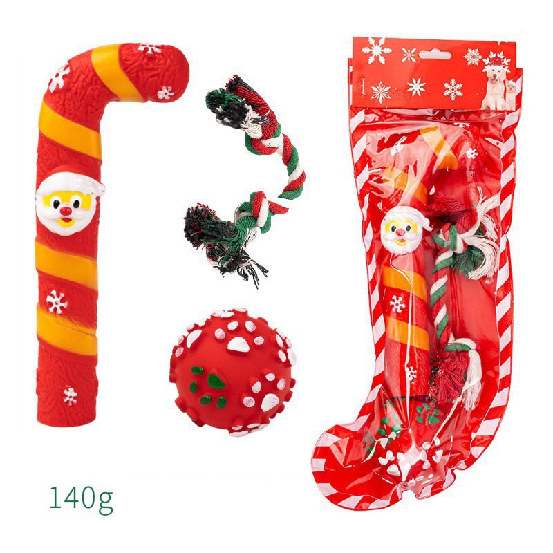 Includes various toy combinations: TPR chew toys, squeaky rubber toys, rope tug toys & Christmas tennis balls