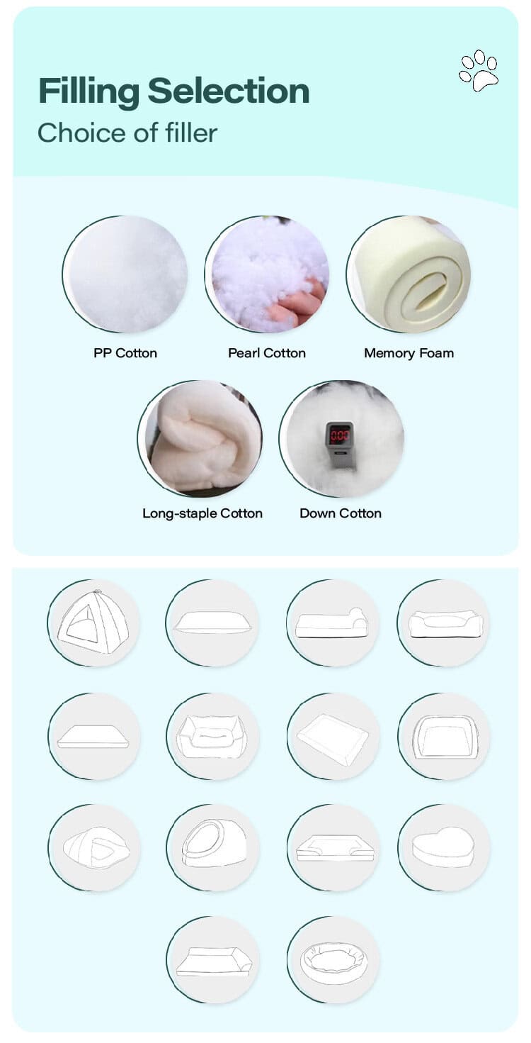 Filling Options: PP cotton (standard); pearl cotton / memory foam / long-staple cotton / down cotton (optional)