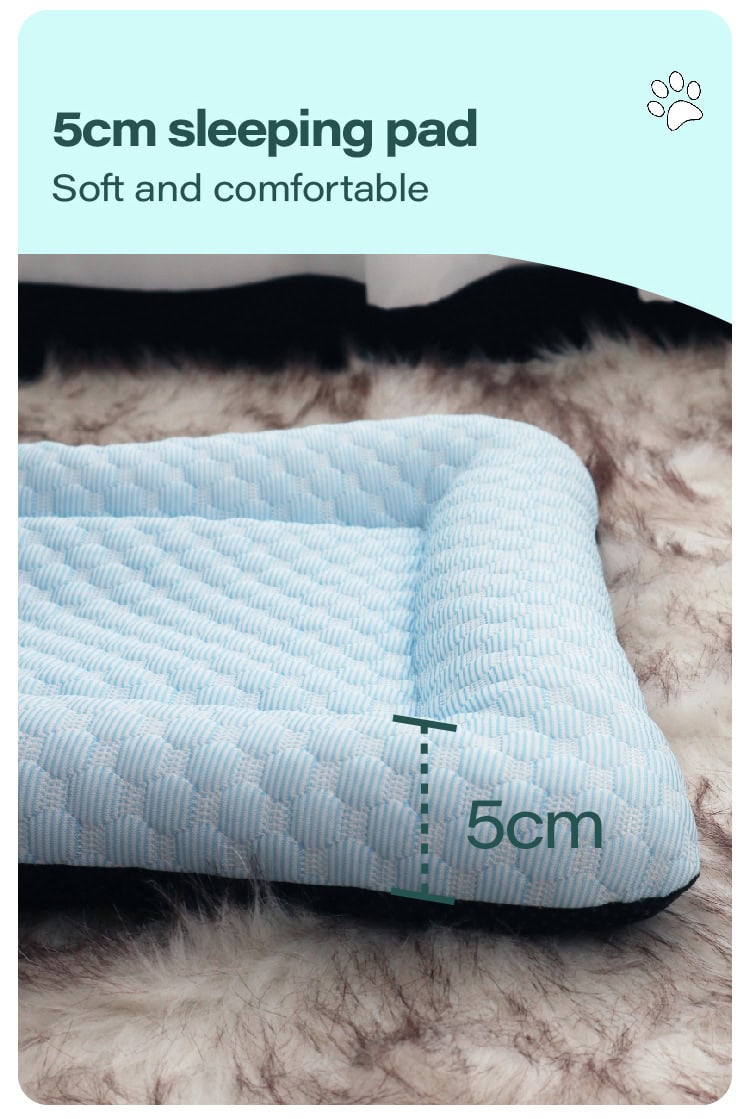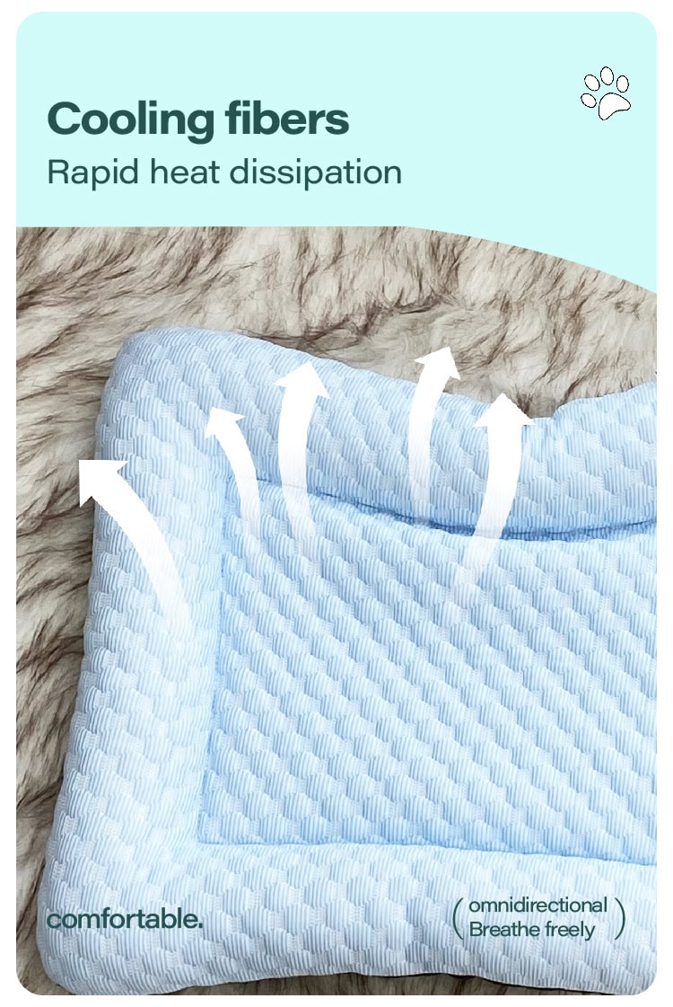 The surface fabric utilizes cooling fibers that promote rapid heat dissipation, helping pets stay comfortable during warm weather without relying on gels or electricity. The internal padding provides stable, lightweight support while maintaining airflow, preventing the “stuffy” feeling commonly associated with thick cushions.