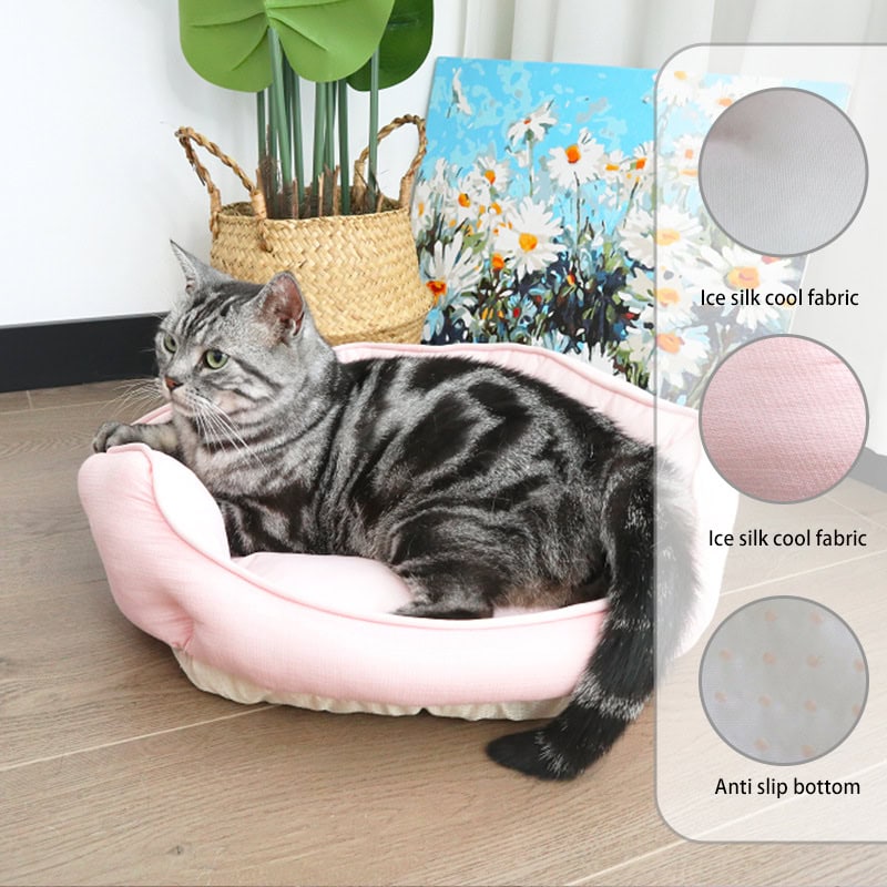 The exterior uses breathable ice silk cooling fabric that provides a cool-to-the-touch sensation, helping pets stay comfortable during warm weather or in air-conditioned indoor environments. The fabric is skin-friendly, smooth, and resistant to pet hair adhesion, supporting easy cleaning and long-term use.