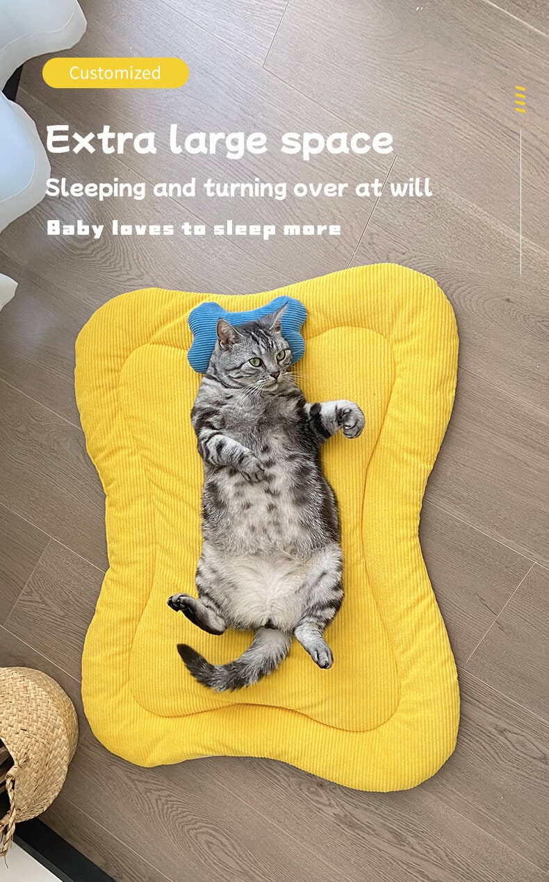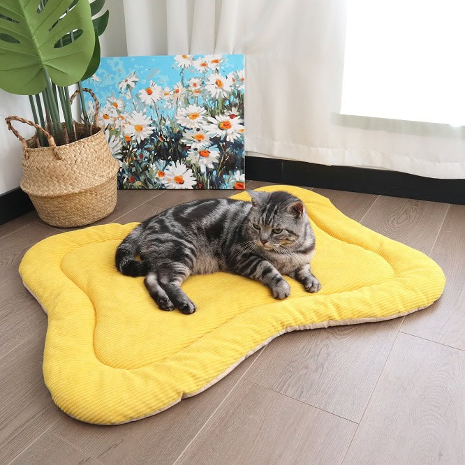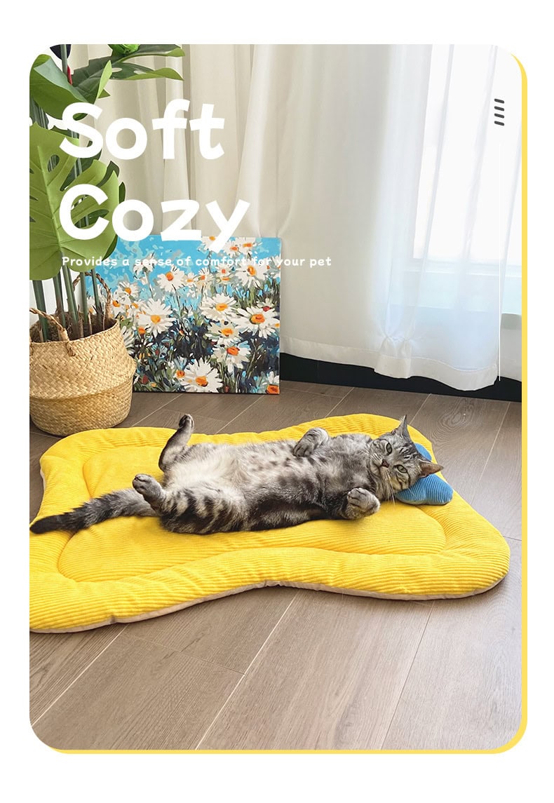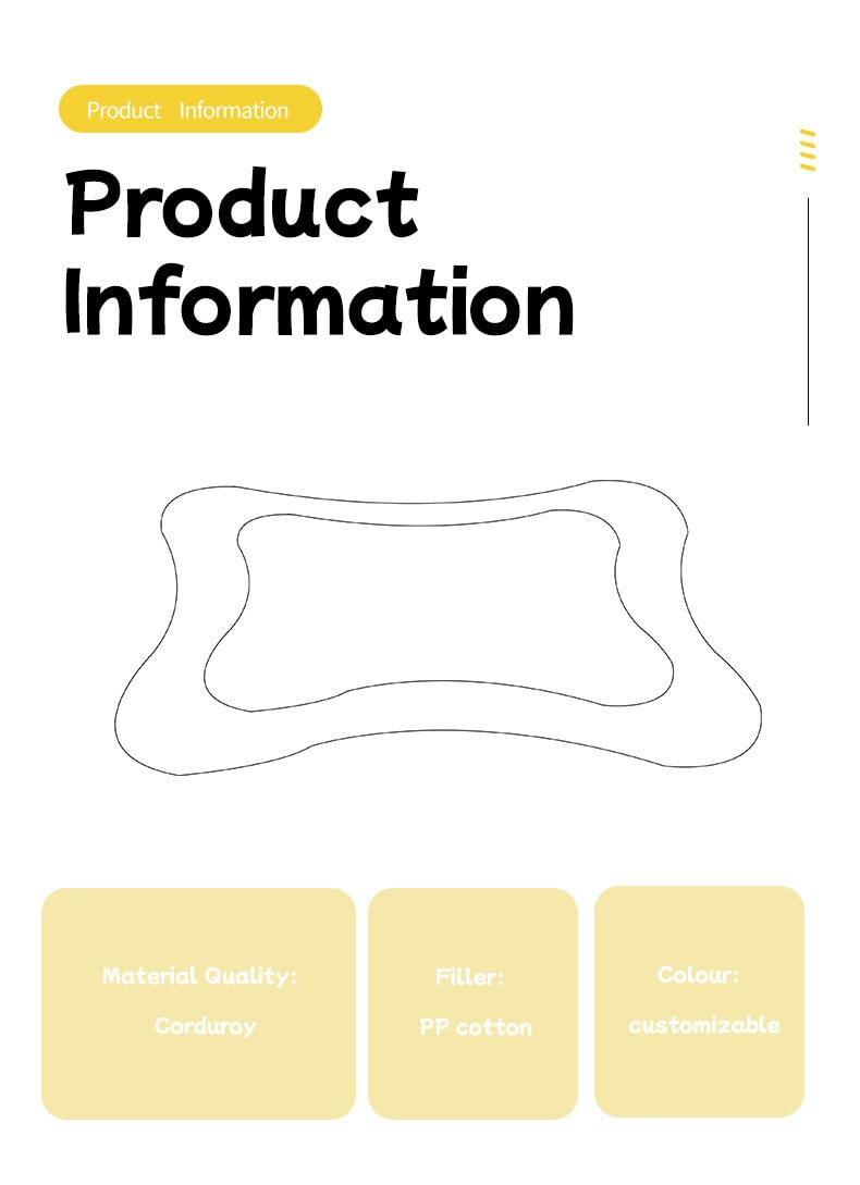 The internal PP cotton filling delivers soft cushioning while maintaining stable shape and elasticity after repeated use. The bone-inspired outline subtly supports the pet’s body without restricting movement, making it suitable for cats and small to medium-sized dogs.