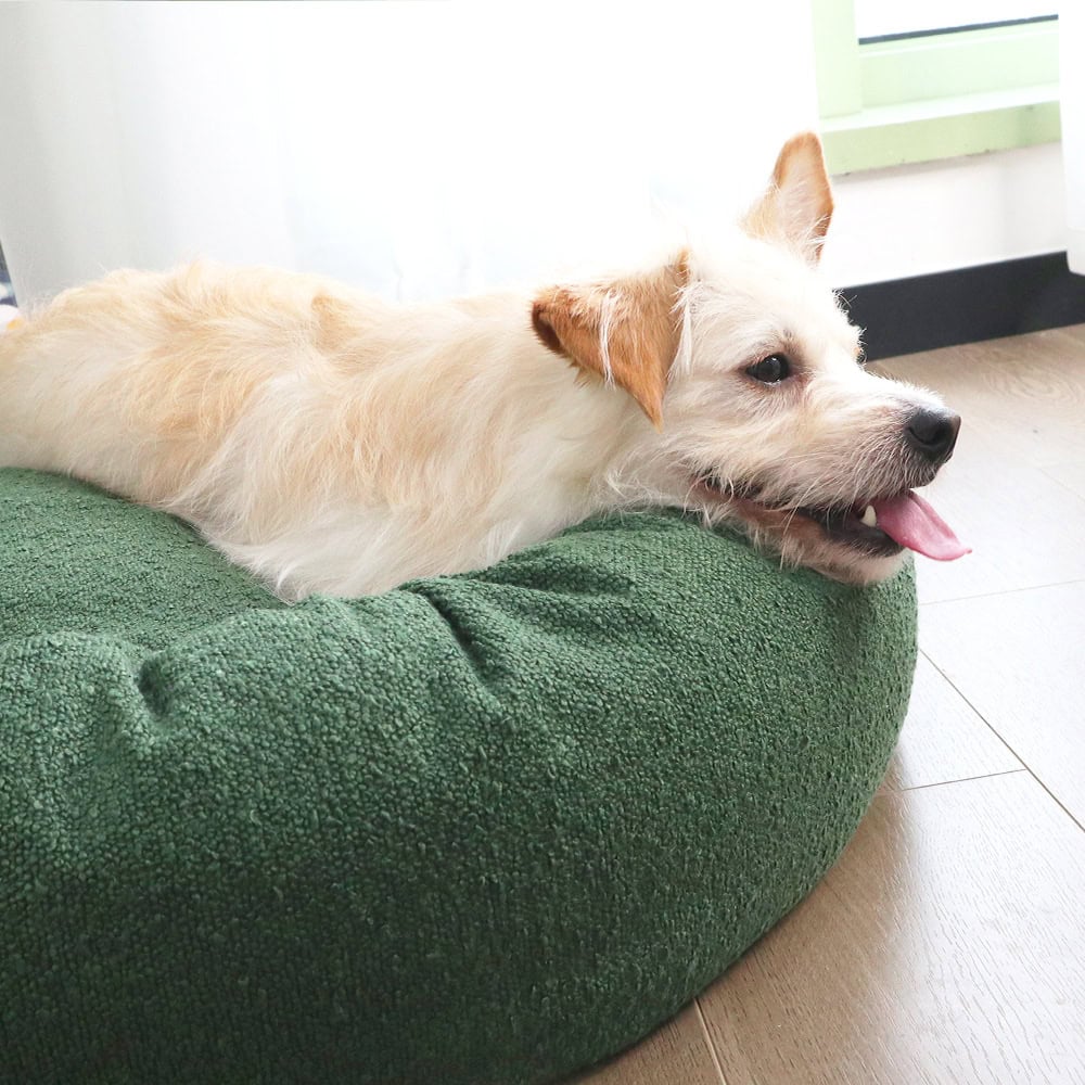 This inviting donut-style bed is wrapped in cozy terry-cloth fabric, providing a gentle yet durable surface for cats and small dogs to curl up in. The deep, rounded bolsters create a secure nest, while the thick central cushion offers supportive comfort. Simply unzip the cushion cover for fast machine washing and freshen up the look in moments. A non-skid backing ensures the bed stays put on hardwood, tile, or low-pile carpet. Perfect for pets who love to burrow, this plush, two-size design suits both kittens and small breed dogs alike.