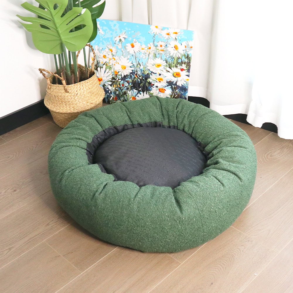 Round “donut” pet bed with high bolstered walls
