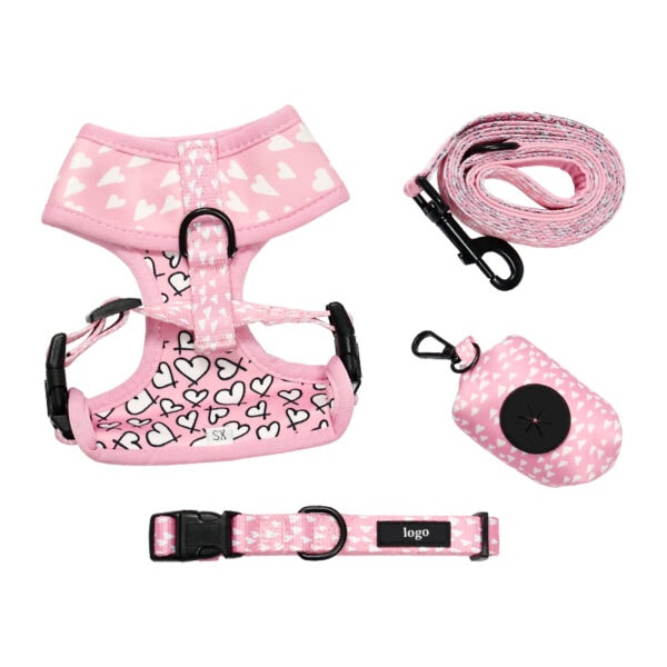4-piece set includes: Harness + leash + collar + waste bag holder