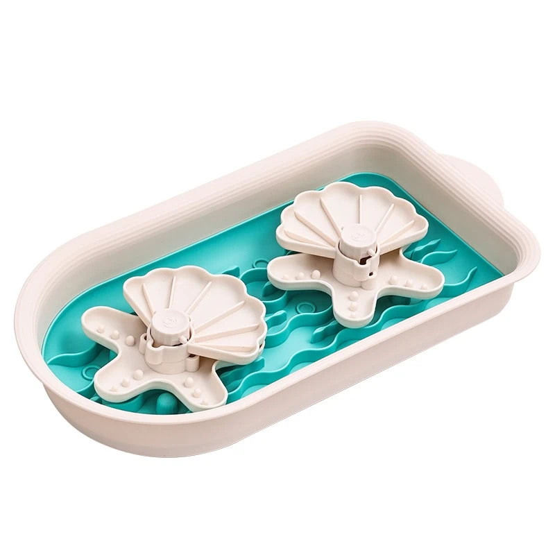 Ocean-themed shell design with movable covers and textured base. Promotes slower eating and interactive problem-solving for curious pets.