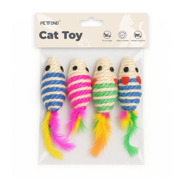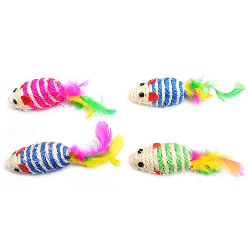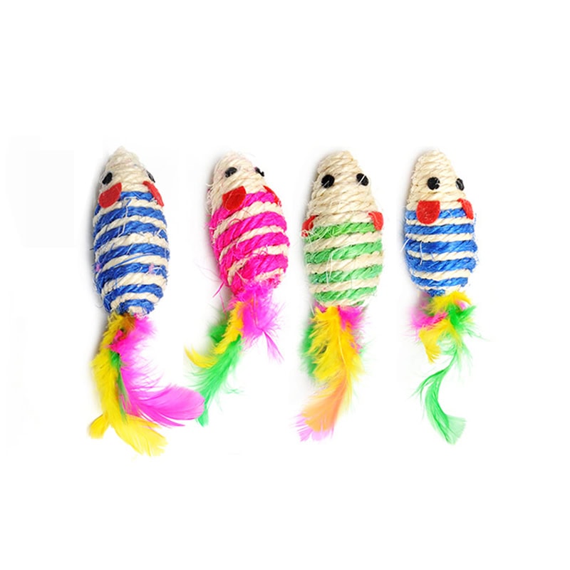 Product Name:Sisal Rope Mice Cat Toys with Feathers – 4 Pack