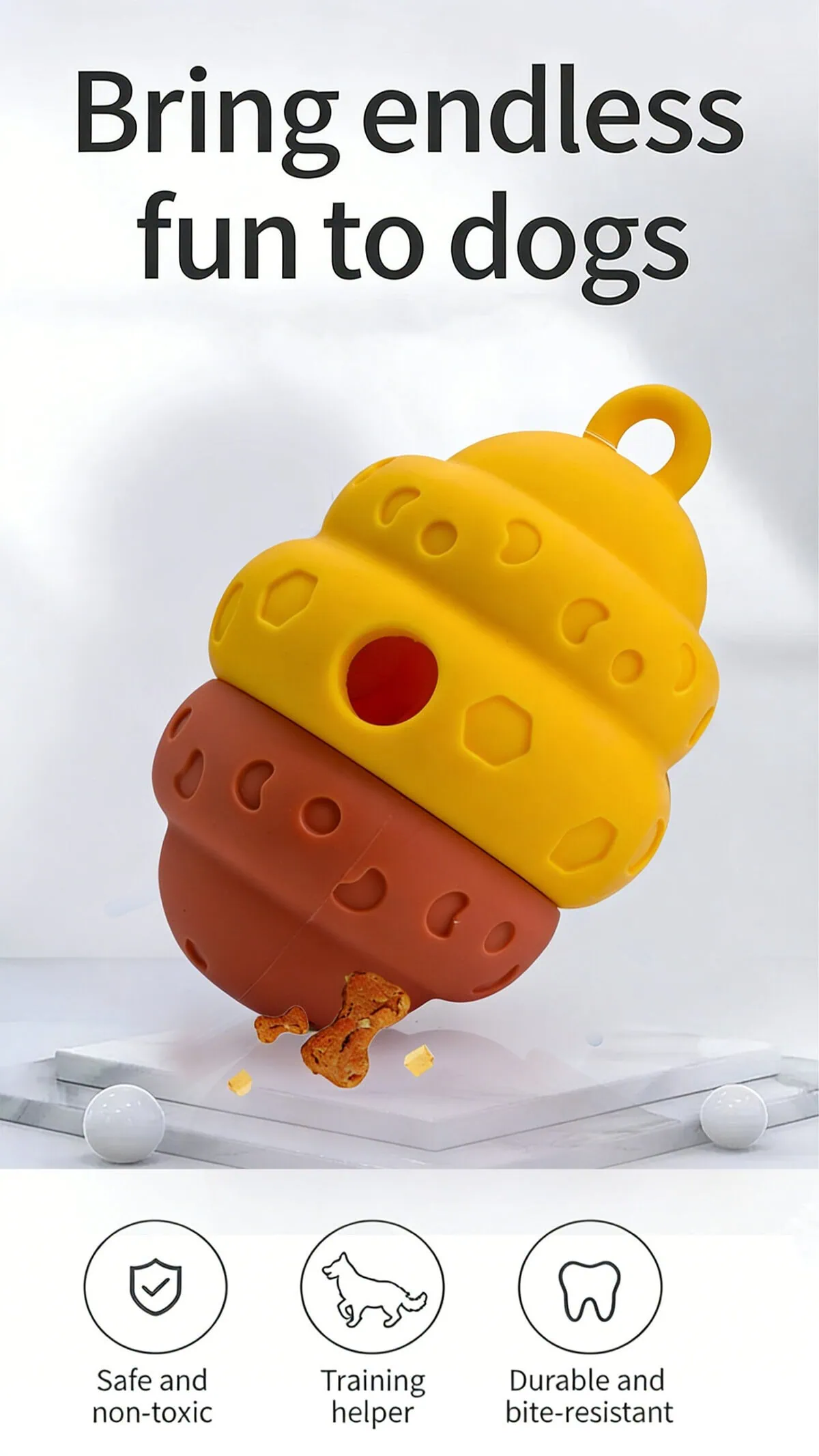 – Hollow internal cavity for snacks and kibble dispensing