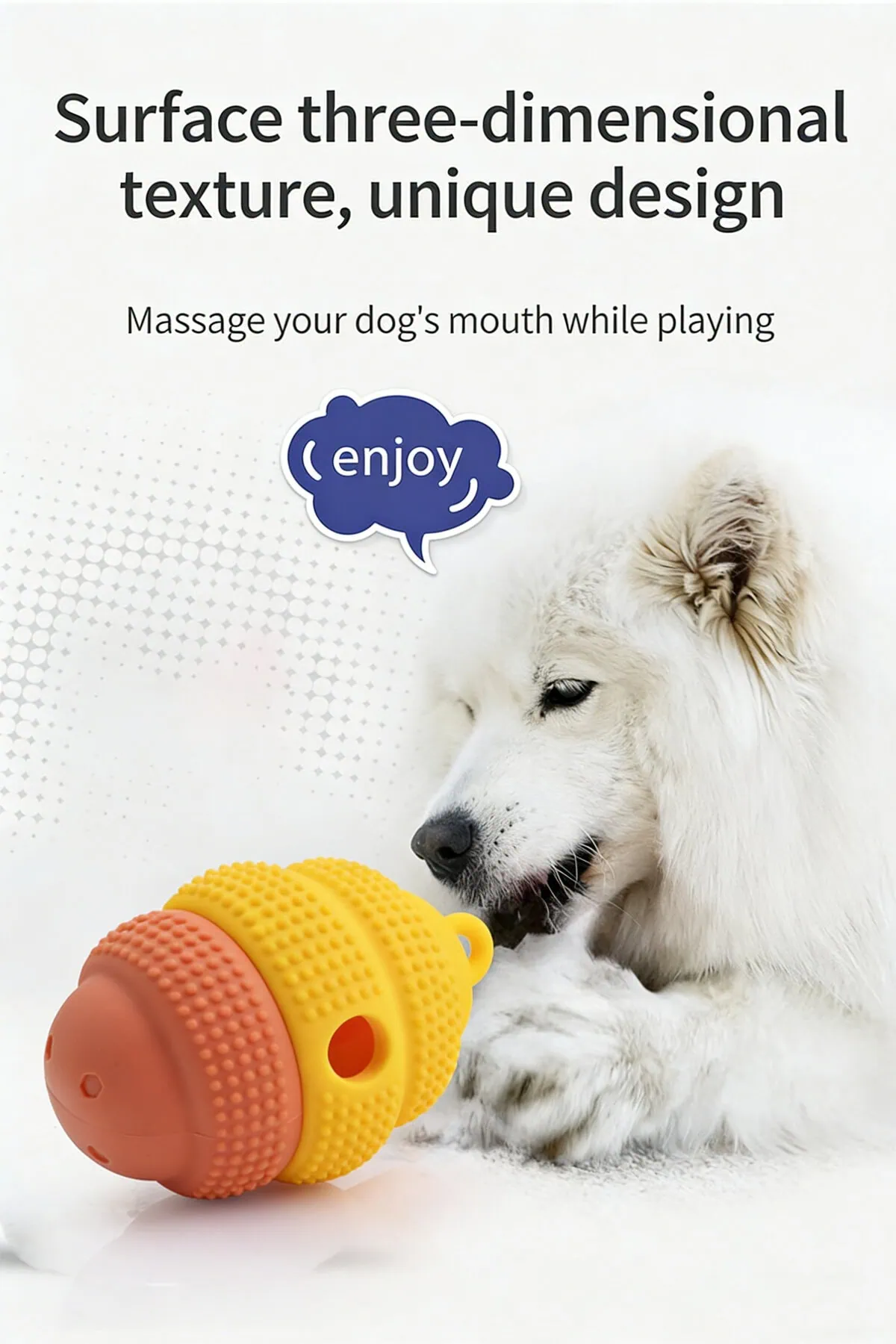 The raised three-dimensional honeycomb texture gently massages gums during chewing, supporting daily dental stimulation and helping clean teeth. Its rounded profile encourages unpredictable movement, keeping dogs mentally engaged and helping release excess energy when playing independently at home.