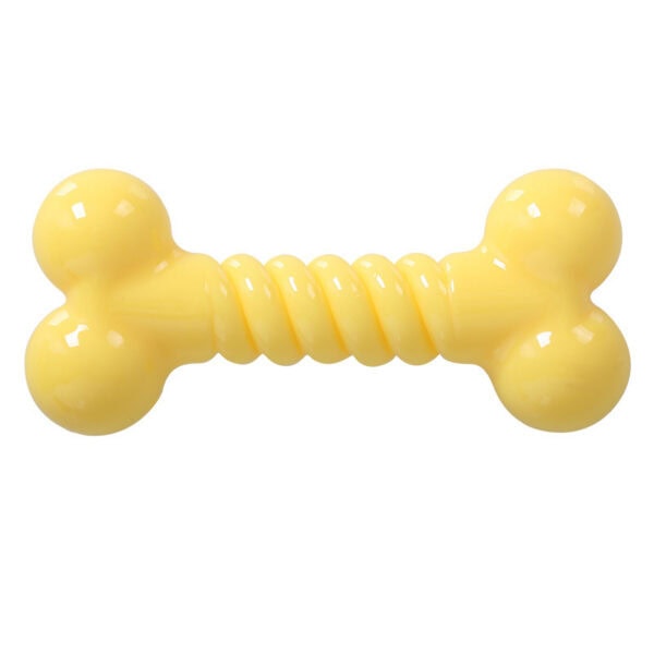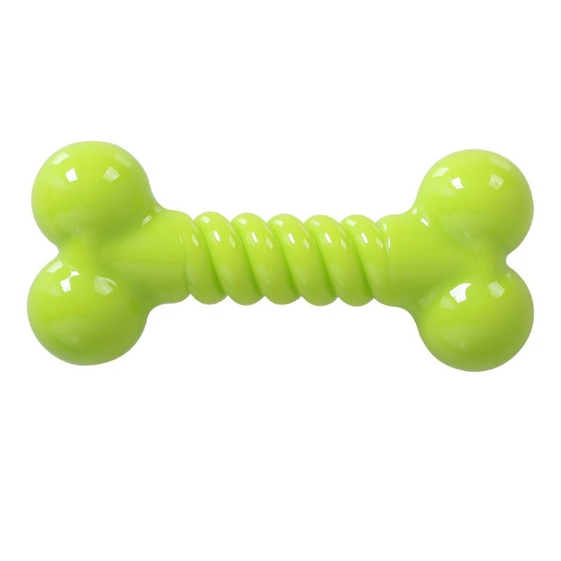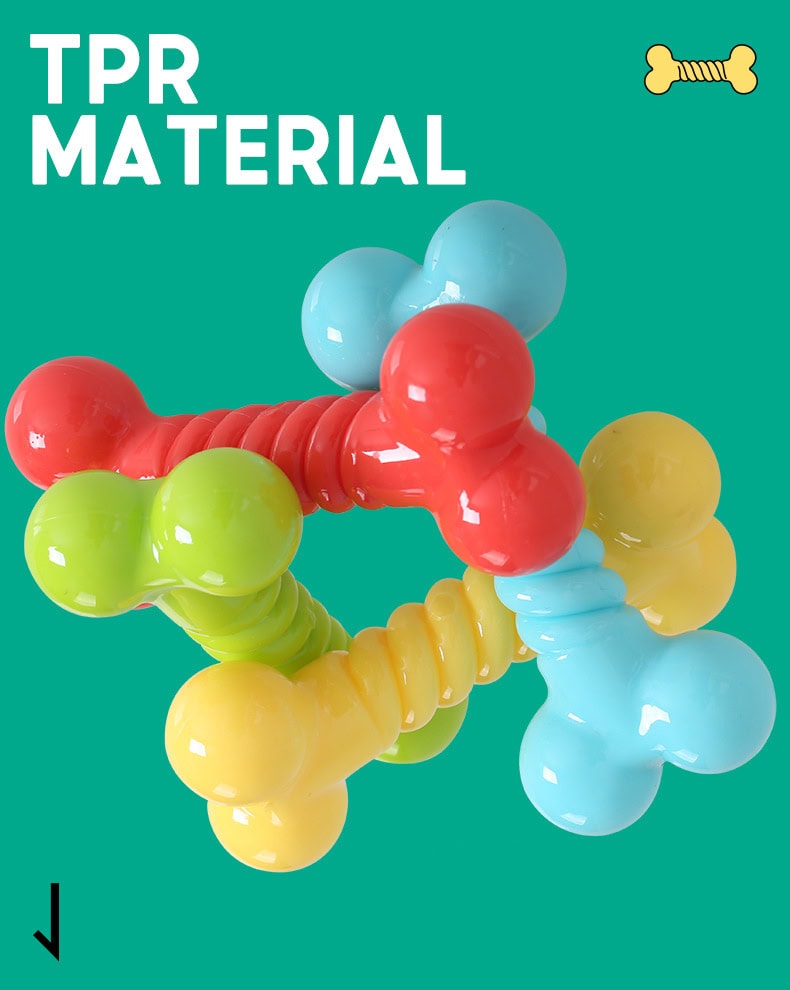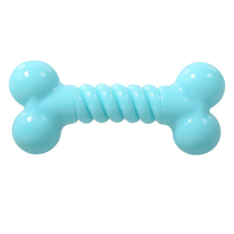 Manufactured from eco-friendly TPR material, the toy offers a balanced combination of flexibility and durability. The spiral texture helps gently clean molars and massage gums during chewing, supporting oral stimulation while remaining soft enough to be gentle on teeth. The rounded bone ends improve grip and make the toy easy for dogs to carry, chew, and retrieve.